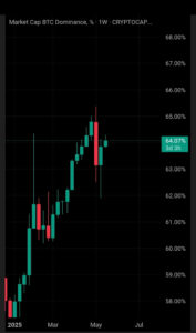 As seasoned crypto investors know, Bitcoin Dominance (BTC.D) is a key indicator of where the market is heading. It measures Bitcoin’s share of the total cryptocurrency market cap. When BTC dominance falls, it typically signals that money is flowing from Bitcoin into altcoins — and that’s exactly what we’re starting to see.